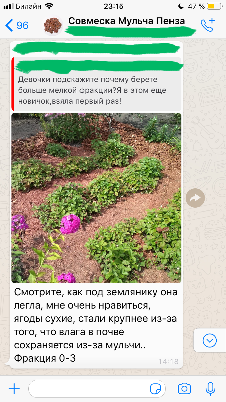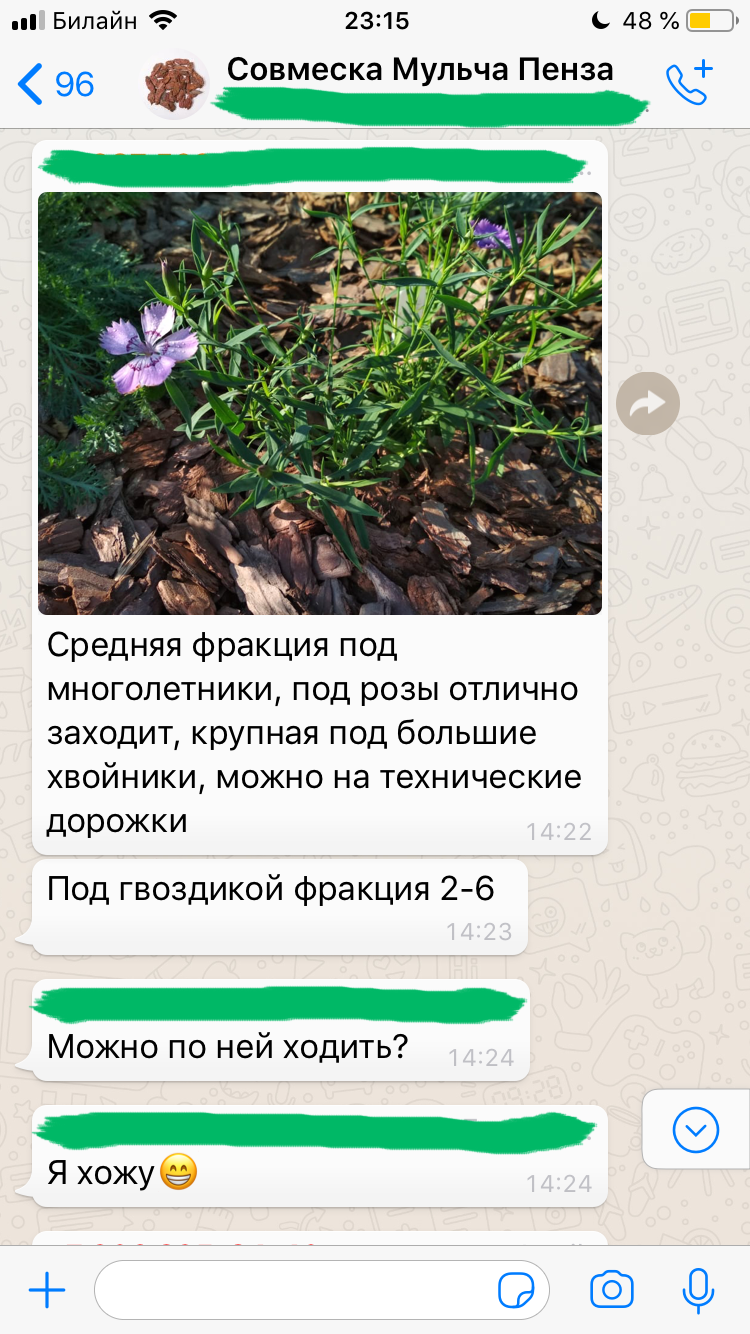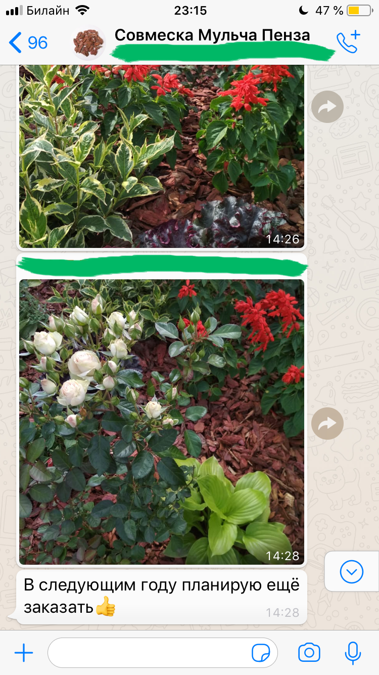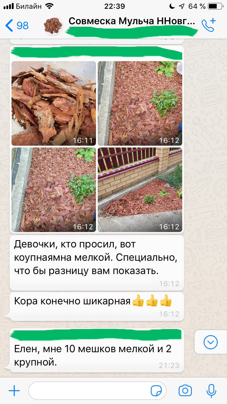 Например, минимальный заказ мульчи – всего 10 мешков. При этом цена на неё от 177 руб. за мешок 60 литров (зависит от фракции и города).